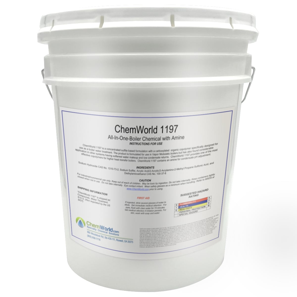 What is an "All in One" Steam Boiler Chemical?An "All in One" Boiler Water Chemical is design and formulated to work in smaller boilers < 200 hp. The advantage of this product is it reduces the number of chemicals on site. This boiler chemical is called ChemWorld 1197.